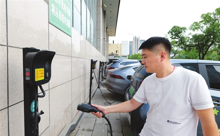 在小区自家车位“就地充电”,是电动汽车用户的最佳充电场景,而共享充电桩的建设集约高效,可以为更多车主“就近充电”提供便利。在新建南路的锦泽苑小区,安装了11台共享充电桩。新能源车主晚上将车驶回,扫码即可充电,其间无需担心被人拔枪,车锁枪锁。次日外出,只需开车时将充电枪插回桩位,即完成充电。侯宝明坦言,共享充电桩目前面临的主要问题是油车占位,另外就是老旧小区一系列客观条件的制约。