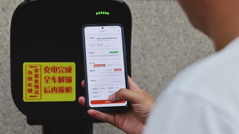 一位小区的新能源车主饶有兴致地向记者介绍如何使用共享充电桩。他一边用手机App扫描充电桩上的二维码,一边说:“这些都是220伏的交流电慢充桩,相比外面充电站380伏的直流电快充桩,更为安全,也有利于延长电池寿命。共享充电桩无人值守,随用随充,每千瓦时大概1元左右,平均1小时能充7千瓦时,充满或者到了预约时间就会自动断电,很方便,不用跑出去找充电桩了。”