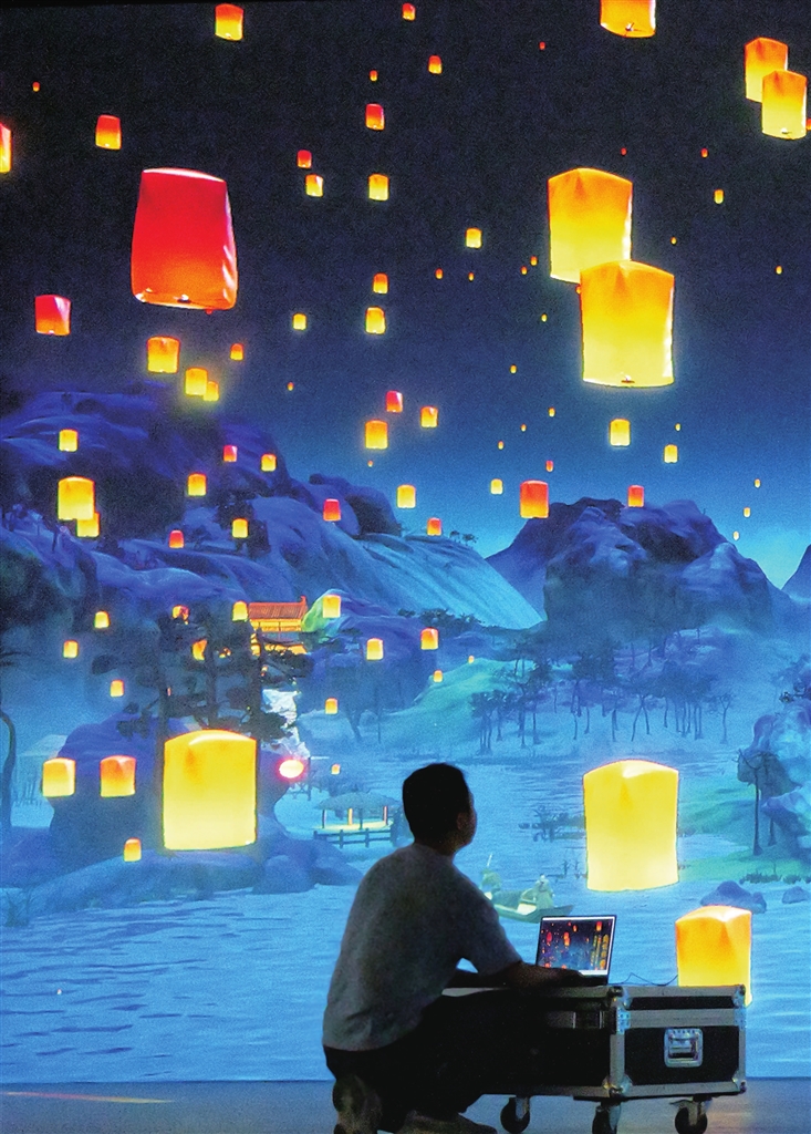 7月7日上午,技术人员在沉浸式互动体验区作调试。王昕 摄