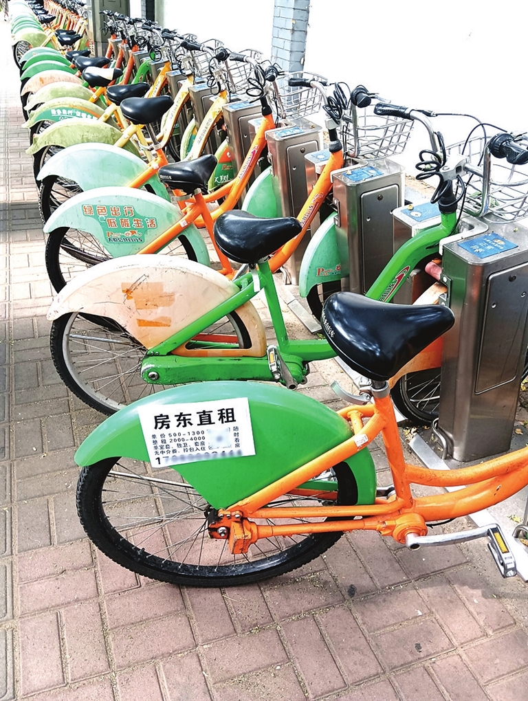 拍摄经过:7月8日,我在迎泽区体育西路一个公共自行车租赁点看到,“小广告”竟然贴在了公共自行车挡泥板上,还真是无孔不入,令人气愤。