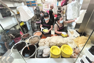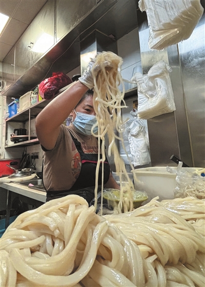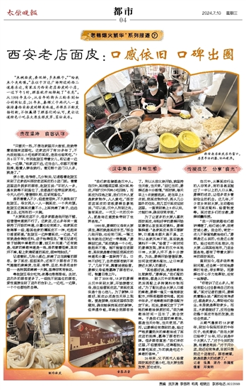 “只要天一热,不想在家里开火做饭,我就带着姑娘来店里吃。这家店开了有20多年了,不光我姑娘从小吃他家的面皮,连我也经常吃。”7月6日下午,市民赵旋玉带着女儿,和记者一边走,一边聊,“他家店不远,这当会儿,你都不用看招牌,跟着人群走就行。看见哪个店门口人多,就是了。”