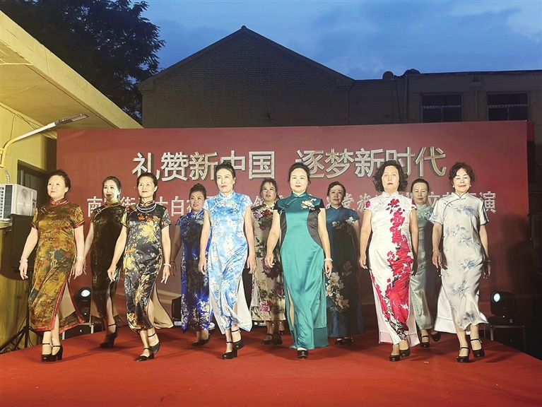 模特走秀、乐器演奏、民族舞蹈、八段锦等表演轮番上阵,给居民带来精彩的视觉盛宴,赢得阵阵掌声。来自太白学堂的文艺爱好者们表演的模特秀,让人印象深刻。参加表演的12名居民,年龄在60岁至70岁之间。