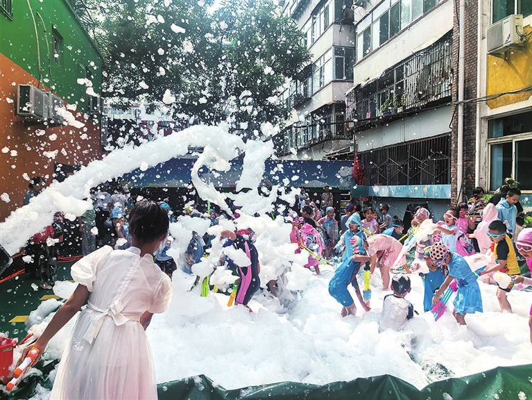 孩子们在家长的陪伴下,或手持水枪“激战”,或携手共筑泡沫城堡,每一个瞬间都定格成了这个夏天最美的画面。水花飞溅,泡沫飘舞,不仅带来了身体上的清凉,更让心灵得到前所未有的放松与愉悦。随着夕阳西下,狂欢活动缓缓落下帷幕,孩子们依依不舍,家长们也意犹未尽,在为社区点赞的同时,也希望社区能继续开展此类活动。