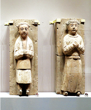 山西沁源段家庄和山西晋城郝匠金墓出土的妇人启门砖雕,因门内女子微微探出头张望略显俏皮可爱,吸引众多观众参观。