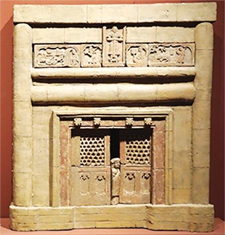 启门图像是古代墓葬中应用广泛的一种题材,因启门之人多为女子形象,故名为“妇人启门”。其最早可追溯至汉,历经唐、五代,到宋金时期更为流行。通过半遮半掩的状态,暗示门后尚有另外世界,给人无限遐想。