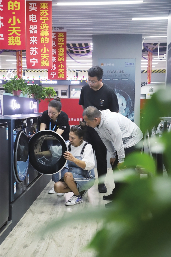苏宁易购河西居然之家店内,顾客在挑选洗衣机。 张昊宇 摄