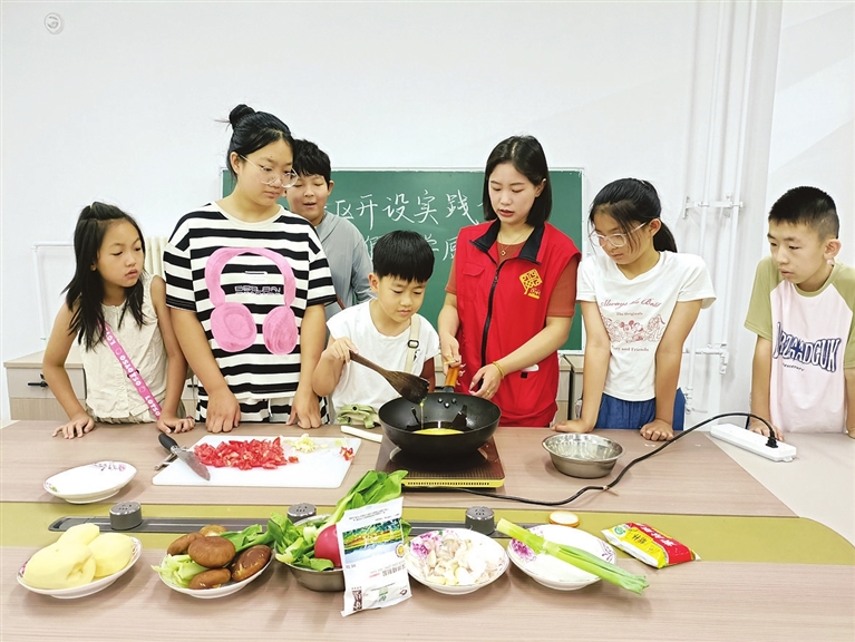 “菜一定要洗净,切的时候小心手,锅热了再倒油……”网格员变身老师,耐心讲解每一个步骤,并一道菜接着一道菜地给孩子们演示。“啥时候放盐?”“老抽和生抽有啥区别?”孩子们目不转睛地看着,认真记下每个步骤,并不时提出心中的疑问。