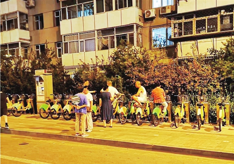 拍摄经过:7月14日晚,我在南内环桥东东北角便道上看到,几位老人坐在公共自行车租赁点的公共自行车上聊天纳凉。我通过查看资料了解到,这种行为是最常见的破坏锁桩行为之一。因为锁桩锁头最大只能承受一辆公共自行车1.5倍重量。有人坐在车上,不仅增加锁头承重,还会影响锁头芯片数据传输。时间长了,芯片和轨道槽就会产生故障。在此,希望大家爱护公共设施,抵制这种不文明行为。