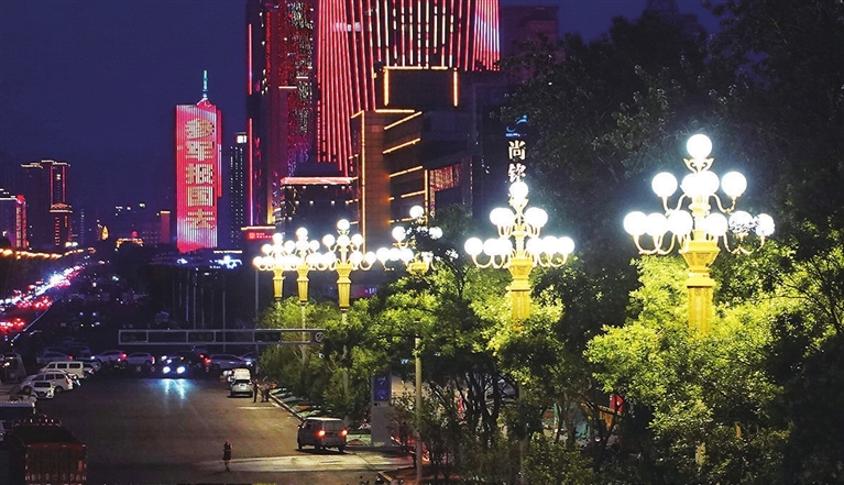 7月16日晚,迎泽大街桃园路至迎泽桥东路段的新型路灯开始点亮试灯。王昕 郭苑甫 摄