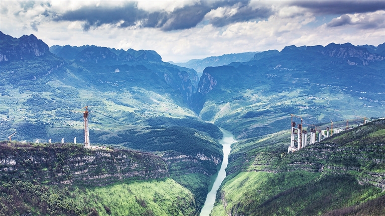 眼下,由中铁广州局承建的贵州安(安顺)盘(盘州)高速天门特大桥有序推进。