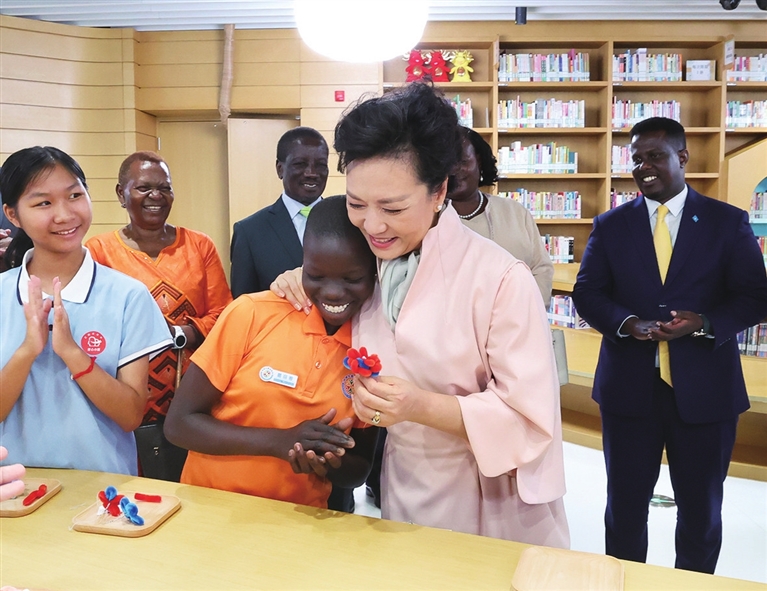 活动期间,彭丽媛同中非儿童一道兴致勃勃参观中国传统文化展示并互动,共同听取中国援非医疗队代表讲述感人至深的援非故事。中非儿童代表分享真挚感受,衷心感谢彭丽媛长期以来给予的关爱,表示将珍惜时光,努力学习,成为传播中非友谊的小使者。孩子们的歌舞表演和趣味游戏赢得阵阵掌声。活动结束时,彭丽媛同孩子们亲切合影并向他们赠送礼物。