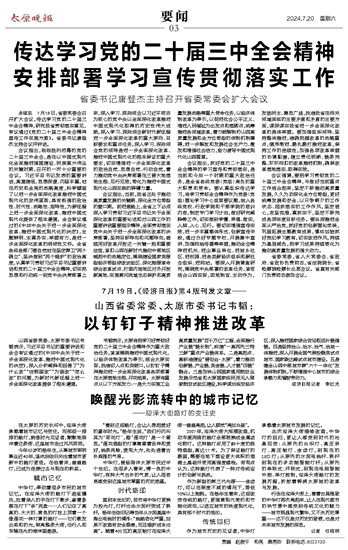 传达学习党的二十届三中全会精神 安排部署学习宣传贯彻落实工作