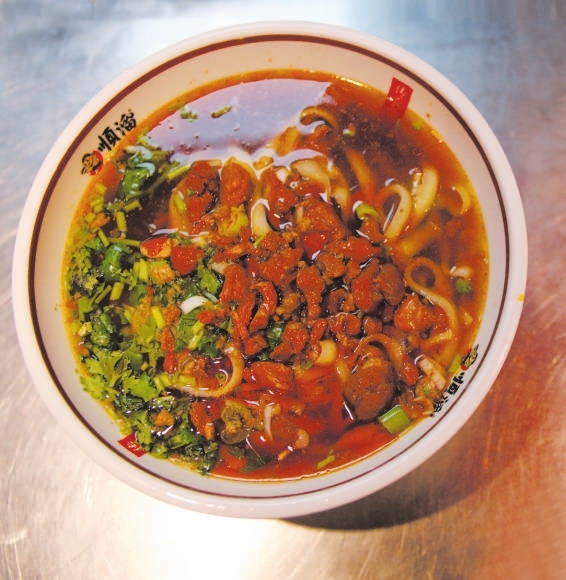 “我们的肉臊子是用细肉煸炒慢炖出来的。”店长邓阳告诉记者,刀削面配的臊子分为肉臊子和素臊子两种,其中以肉臊子为主。“顺溜”家的肉臊子,糯烂得如吸食骨髓,让人看着眼馋。大块大块的肉,好像完全是用火煮化了一样,明明是一坨子肥肉,却吃不出一点肥腻来。