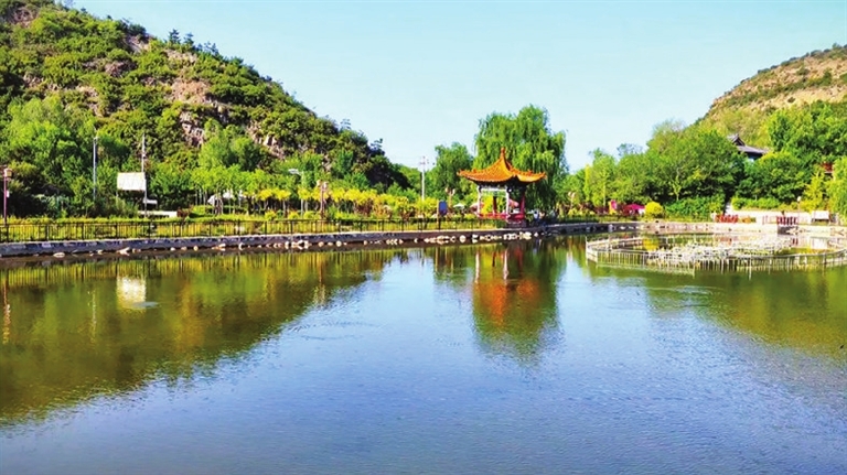 俯瞰四周,群峰聚秀、满目翠绿,森林茂密,万木峥嵘;脚下的惕龙湖宛如一块晶莹剔透的碧玉,佩戴于群山的脖颈间;眺望太原城,汾河如带,绿林如烟,高楼林立,高架纵横,车水马龙,好一个如诗如画的锦绣太原城。