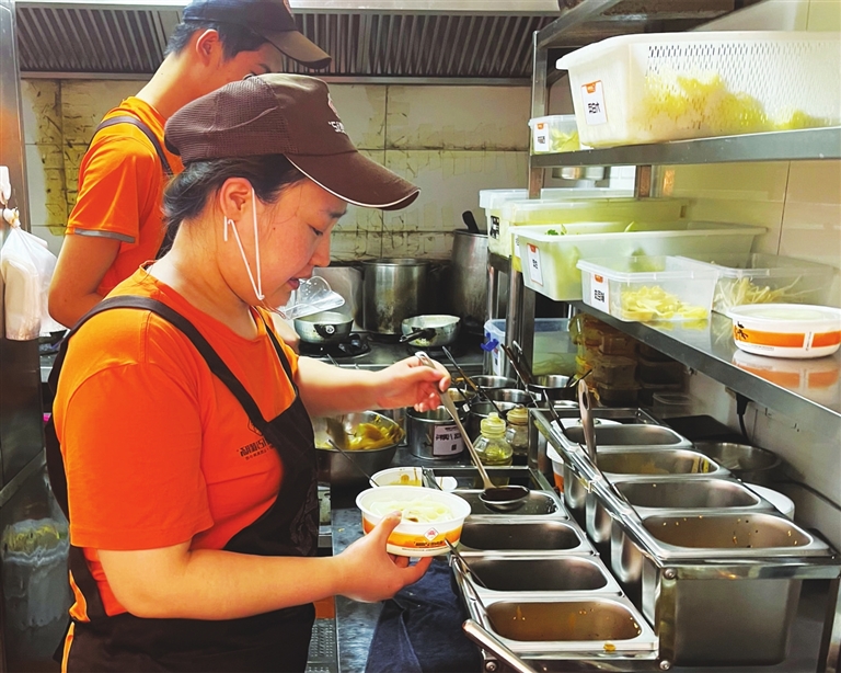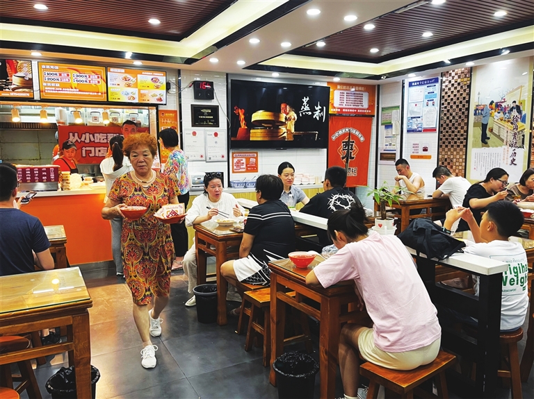 “卤汁黏稠丝滑,灌肠细润油亮,入口既有面食的敦厚,也有卤汁的清香,再配上秘制辣椒,真的很开胃。”来自湖北的冯宇一边吃着卤灌肠,一边赞不绝口。