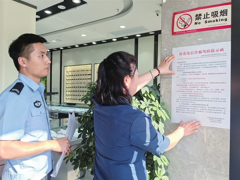 利用黄金市场流动性大的特点,不法分子前脚在金店斥巨资购买黄金,后脚就出手变现,将违法犯罪所得“洗白”,这已成为电信诈骗人员“洗钱”的方式。针对我市近期发生的类似案件,造成部分商户收款账户被冻结的情况,文庙派出所民警按照迎泽区反诈中心发布的提示,将反诈风险提示函张贴在辖区各金店。