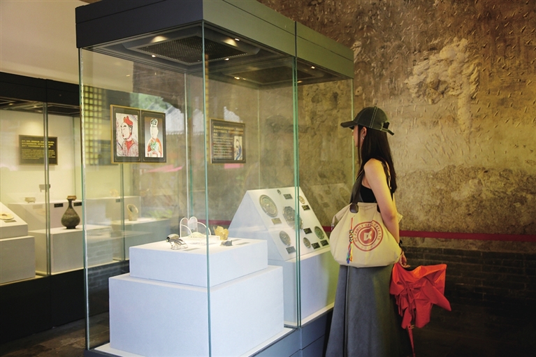 走出展厅,阳光透过树叶洒落在地上,留下斑驳光影。环顾四周,虽然院子面积不大,但陈设雅致,古代游艺节目和非遗体验错落有序。