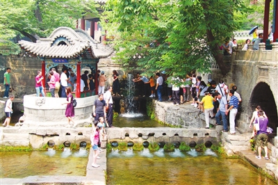 饮马泉、望月楼附近,亭台楼阁、回廊、湖水、古建、雕塑、绿树、山石,互相映衬,从不同的角度拍摄可以获得不同的美景;位于公园北部的九龙湖、曲桥、湖心岛、湖岸的枫林、曲水溪流,在万木霜天红烂漫的时候,这里的景色更让人陶醉,正是拍摄风光照和人像照的绝佳时机。