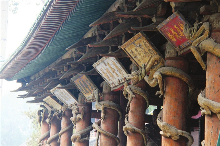 遍地宝藏正是拍摄古建难得的所在。因为整体建筑在西面的悬瓮山下,坐西朝东,最好在上午去拍,光线要好一些;核心建筑圣母殿、献殿、对越及其细节值得详细品味,圣母殿的木雕盘龙,看似褪色,经过后期处理会显现出想象不到的美;从文物保护要求,殿内侍女像不许用闪光灯,所以要用三脚架;园内许多文化价值、文物价值、艺术价值、建筑价值极高的古建让人应接不暇,要拍好它们首先要事前做好功课,中国古建讲究对称、稳定,最好用广角从正面拍摄;当然摄影有规矩,也要灵活运用,基本原则应该是尊重古建美学原则,符合人们的审美习惯;为了完整地表现一地的古建特点,它们的细节不可忽视,如雕塑、藻井、彩绘、匾额等。在这里我们要拍的不仅仅是湖光山色,还有厚重的历史。要拍出好作品,摄影人的心态、修养、知识储备、悟性等很重要。