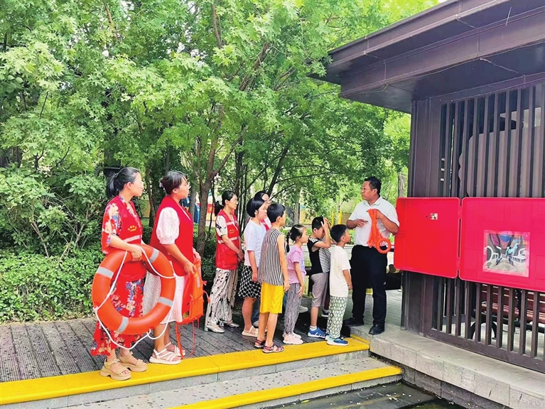 滨体社区党委书记李福林介绍,很多小区配建了景观水域,对于成年人来说并不深,但幼童不慎掉入,极易发生溺水。社区、物业在景观水域旁,配备了“一块警示牌、一根救生杆、一个救生圈、一根救生绳”的安全“四件套”。一旦有孩子溺水,周围人可第一时间取用,为溺水者赢得黄金救援时间。
