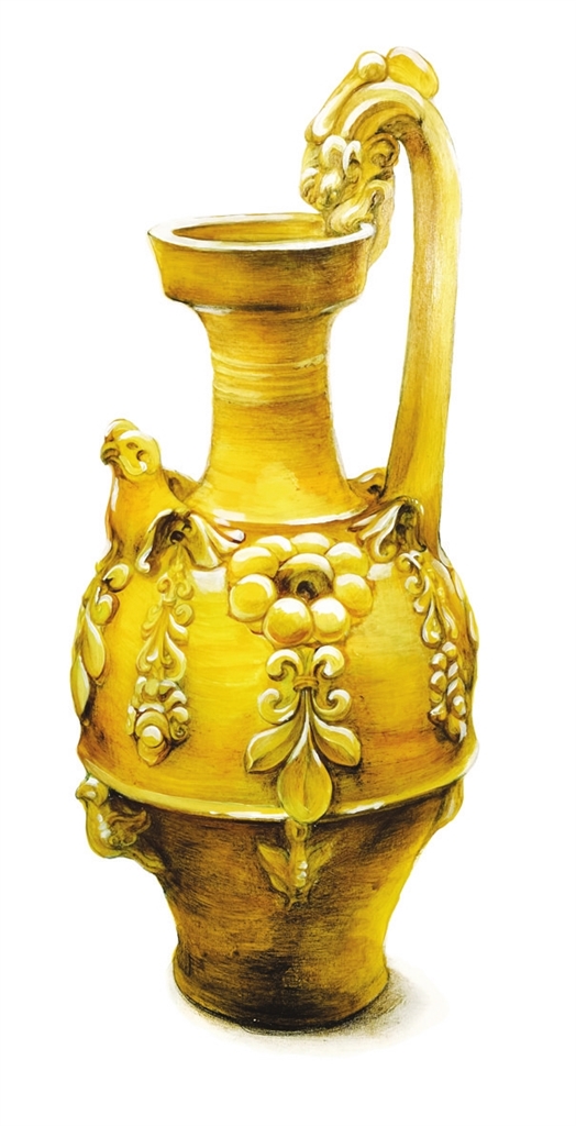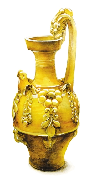 公元570年,我诞生于北齐。这一年,北齐后主高纬将天统年号改为武平年号;这一年,大将斛律光破北周军队取得大捷。我本应该出现在晋阳宫的庆功宴上,盛满备受武成帝高湛推崇的汾清酒,觥筹交错间,满殿灯火中,我黄绿色的釉面闪着莹莹的光。