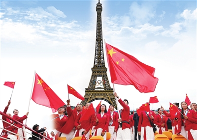 按照奥运会惯例,希腊代表团第一个入场,东道主法国代表团则在最后入场。其余参加开幕式运动员入场仪式的各个代表团,以法语首字母为序入场,中国代表团排在第41位。在中国代表团的游船上,乒乓球运动员马龙和花样游泳运动员冯雨高擎五星红旗。