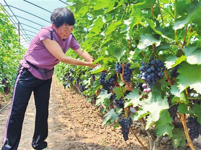 这几天,王吴村大棚里的早黑宝葡萄陆续成熟,采摘园里迎来不少游客。“我们种了13年葡萄,一共有4个大棚,每个棚2亩地,都施农家肥,葡萄是自然成熟的,口感好,欢迎大家来采摘品尝。”卫卫采摘园种植户王保卫发出温馨提示,大家可以趁天气凉快的时候来采摘,先逛逛葡萄园,然后喝碗牺汤,体验乡村美景。据了解,王吴村种植了500亩早黑宝葡萄,年产量稳定在25万公斤左右,由村集体统一把控品质,基本上通过采摘能全部销售完。