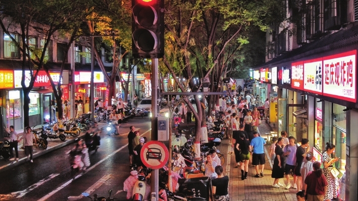 夜色中的桃园二巷,来品尝美食的人流,愈来愈熙熙攘攘了。
