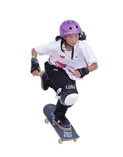 “小孩姐”3岁接触过轮滑,10岁才正式与滑板结缘,起初并没有想着走专业路线,但站上滑板之后就有一种“熟悉的感觉”,让她“练动作特别快”。