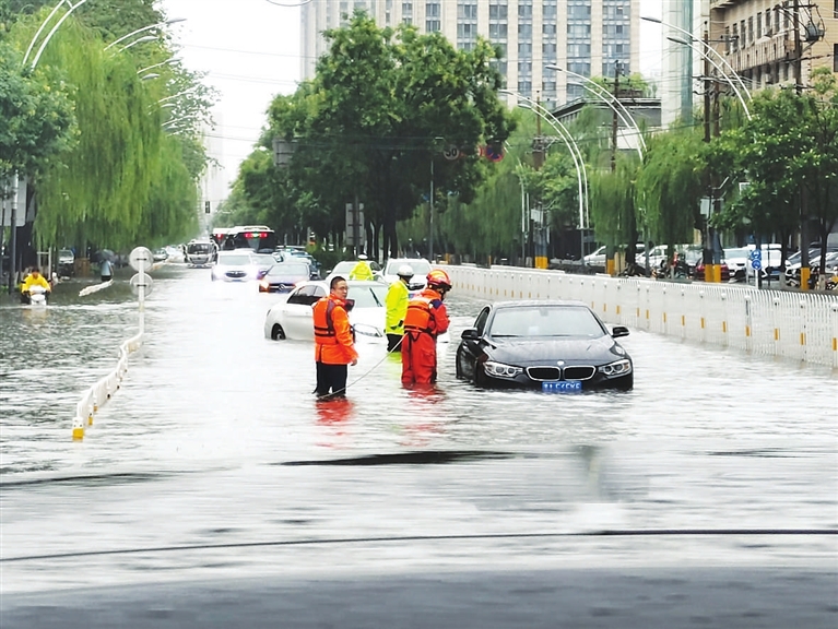 7月30日7时许,各大队交警已全员到岗,排查积水路段,展开积极疏导。早高峰期间,南内环长治路口积水较为严重,迎泽二大队民警勘查水深后确定道路仍具备通行能力,但很多司机却看着积水望而却步。于是,四五名交警站进水中,用自己的身体当标尺,给司机指示积水深度。在交警的指引下,司机放心通过,虽积水较为严重,但路口维持了基本的通行能力。