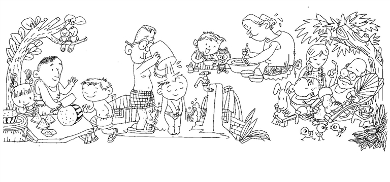 自来水冲澡。上世纪六七十年代,老太原人大多数都住在大杂院或小巷的平房里,平房面积有限,一家三代十几口人住里外套间也很普遍。暑天身上汗津津的,用脸盆打湿毛巾擦擦身子还凑合,晚上想冲个澡根本没那条件。于是一些半大小子们干脆提上水桶,穿条短裤,赤膊搭块毛巾,穿双趿拉板儿“呱嗒呱嗒”地涌向街头的公共自来水龙头前,打上多半桶水,全身淋湿,再打上肥皂,互相用毛巾帮对方搓澡。