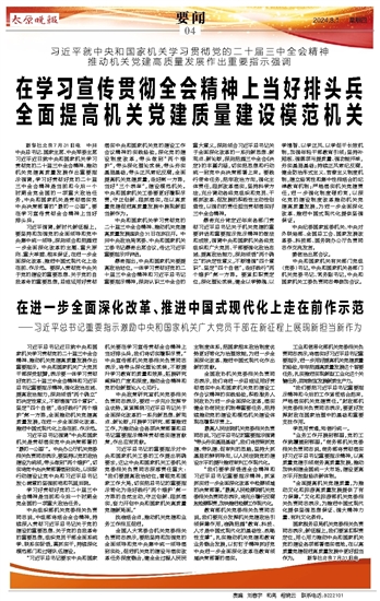在学习宣传贯彻全会精神上当好排头兵 全面提高机关党建质量建设模范机关