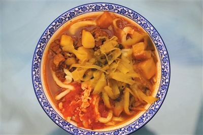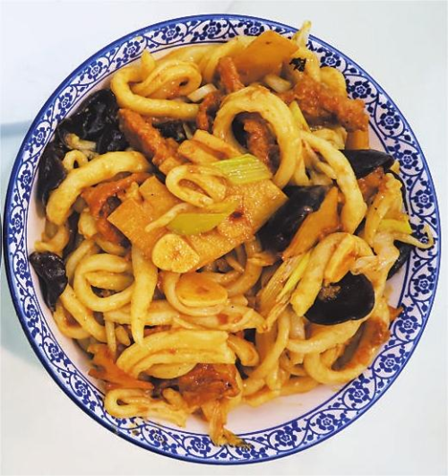 在百味家宴,面的花样繁多,且把饮食健康的重要性发挥到淋漓尽致。比如,莜面、豆面等粗粮面,有长期食用不易肥胖的特性,深受减肥人士青睐;红面擦尖、莜面栲栳栳,含丰富维生素和膳食纤维,有助消化功效,中老年人十分喜爱;白面则最受年轻人欢迎,剔尖、揪片、拉面、刀削面、抿圪斗,更可以“变身”为西红柿蛋炒面、尖椒肉丝炒面、过油肉炒面等。