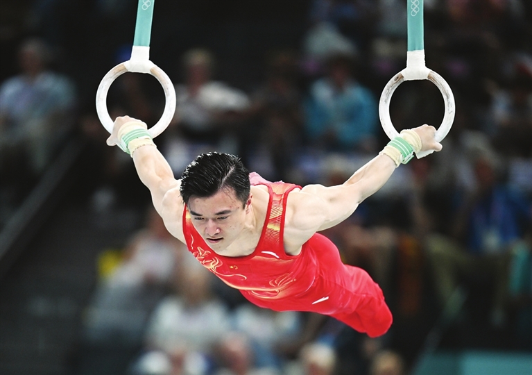 吊环没有悬念!中国队的“双保险”刘洋和邹敬园以资格赛前两名的成绩携手闯进决赛。邹敬园在8名决赛选手中率先登场,以稳定发挥拿到15.233分。