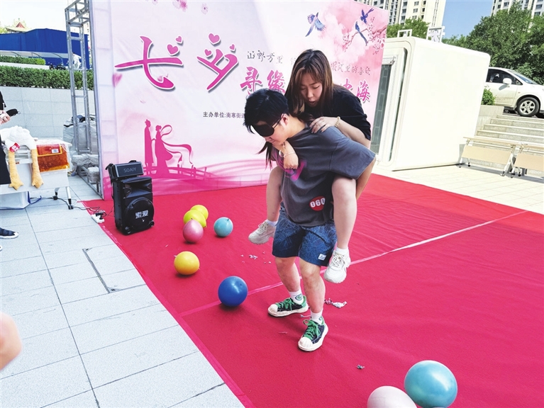 青年们来自驻地单位和小区,来参加活动,都希望收获友谊、邂逅浪漫。为了迅速拉近单身青年们之间的距离,帮助大家尽快相互了解、增进友谊,现场精心设置了“踩气球”“真情告白”等有趣好玩的游戏环节。两人一组,在协作间相识,迅速拉近了距离。