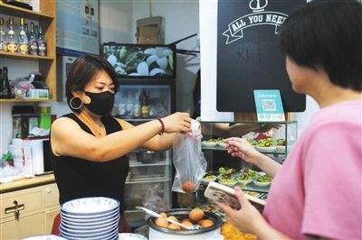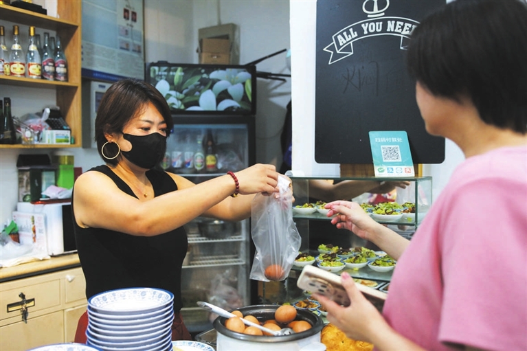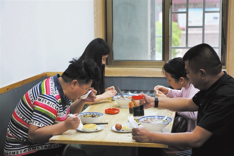 8月3日清晨,升起的阳光透过窗户洒进店内,店内飘香的热气早已唤醒了人们对生活的热爱。“80后”店主李欢为食客递上一碗柳叶片汤面和两张素馅饼。筷子轻轻一挑,莹亮剔透的面片与白色的热气从碗中被撩起。食客一手端碗,唇贴碗边,小心又急切地吃上一口,胡椒打底的咸鲜味道顿时温热了整个身体,湿气一扫而空。金黄酥脆的馅饼咬一口,内馅滚烫,韭菜、粉条、鸡蛋搭配起来的香气瞬间涌入鼻腔,在唇齿舌尖蔓延开来。“吃了10多年了!我的孩子从小就爱吃他家的馅饼,现做现烙,外皮酥脆,馅料丰满,实在离不开这种老味道。”食客何东升说他每周至少来吃两次。