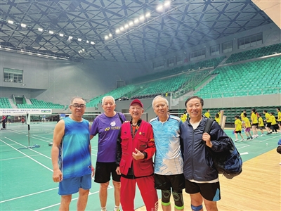 6年后,他第二次参加全省中老年比赛,获得110岁(两人年龄相加)组混双冠军。随后一个偶然机会去北京探亲,儿子带他去球场,他和北京球友混熟了,搭档参加全国中老年赛事,取得了好名次。2016年,他正式被吸纳进北京老年羽毛球队。紧接着几年,他在全球“华人杯”(羽毛球业余界的一项重要赛事)赛事中,连获佳绩。其中,2016年获得140岁组男双冠军。2019年和2024年,他还分别获得全国中老年赛的160岁组和170岁组的男双冠军。