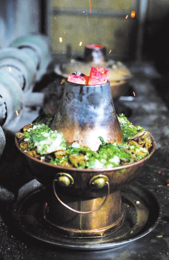 吃到尽兴时,必须再点一个大馒头,在火旺时,把馒头放在出火口,调控火力的同时还能烤出馒头片。烤出的馒头片外焦里嫩,就着菜和肉,满口留香,极致满足。