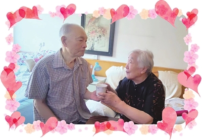 杨大爷累了,躺在床上闭目养神,赵大娘便会翻出报纸,一条条新闻读给他听。“我识字不多,她有文化。”杨大爷说,有时候老伴还跟他讲报纸上的故事,听起来蛮有趣的。“俗话说‘千金难买老来伴。’不管什么时候,有人陪伴和关心,这就是幸福生活!”杨大爷感慨地说:“结婚69年,离不开老伴的理解、包容和照顾,我很感谢她。”
