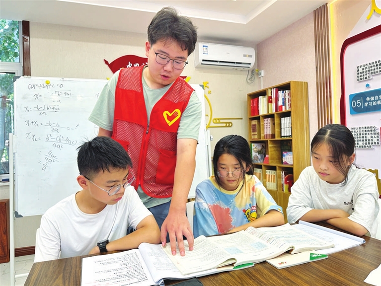 孩子们陆续到来,拿出暑假作业,认真写着。不时,有孩子请教问题,高鑫走过去,耐心解答,直到孩子完全弄懂。20岁的他,是太原科技大学环保设备工程专业的大二学生。