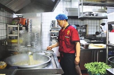 “配方大家都一样,但制作方法上有细微的区别,做出来的味道大不一样。头脑汤用煮完肉的汤与羊骨汤一起熬制,羊肉选用右玉羊腱子肉,长山药来自汾阳,口感软糯绵香。”高朋说,无论是药材的选用,食材的选择,都优中选精,确保把这一传统药膳原滋原味呈现给食客。