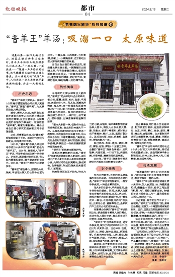 “晋羊王”其实大有来头。晋羊王(山西)餐饮管理有限公司负责人高朋讲,“晋羊王”原名“晋羊阉”,为太原历史名人傅山所创。