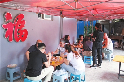 自家小院开饭馆,饭桌摆在小院中,小院味道的装修风格主打一个“朴素”。木质小饭桌、塑料小板凳,齐活。