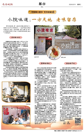 幸运源于热爱。生于斯,长于斯,双龙巷见证了朱亚屏的成长,见证了他年少时的喜乐与忧伤。如今,不忙的时候,他喜欢站在自家饭馆大门口,看着来往的人群,看着小巷的变迁。道路变宽了、房子变高了……仿佛很多都变了,但老邻居没变,老屋子没变,他对山西菜的喜爱没变,对这座城市的爱依旧热辣滚烫。