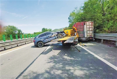 8月6日,青银高速太原方向发生一起交通事故,一辆运送故障轿车的清障车撞上了停在应急车道内的故障货车。事故导致三辆车不同程度受损,路产损坏。事故发生后,故障货车、清障车及被运输的故障轿车“一字排开”横在路上,堵塞交通。