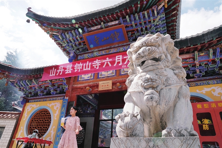 7月11日,农历六月初六,钟山寺六月六庙会在焉支山举行,人们来到钟山寺游览祈福。