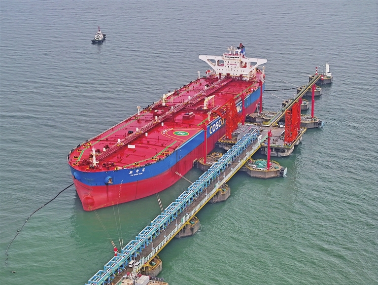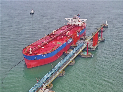 8月13日,载运约26.3万吨原油的“新申洋”轮重载进靠钦州港30万吨级原油码头,开始了为期约4天的卸油作业。这是该码头投入使用以来首次接卸吃水达到20米的超大型油轮(VLCC)。“新申洋”轮总长332.9米,型宽60米,型深29.8米,属于当前国际海上原油运输的主力VLCC船型。