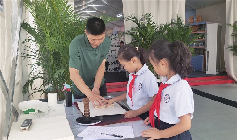 暑假期间,“文博热”持续升温。为了更好地满足大家对公共文化服务的需求,山西博物院推出丰富多彩的活动,拉近观众与文物的距离。8月14日,孩子们体验“国潮”拓印的魅力。 平原 刘敏 摄