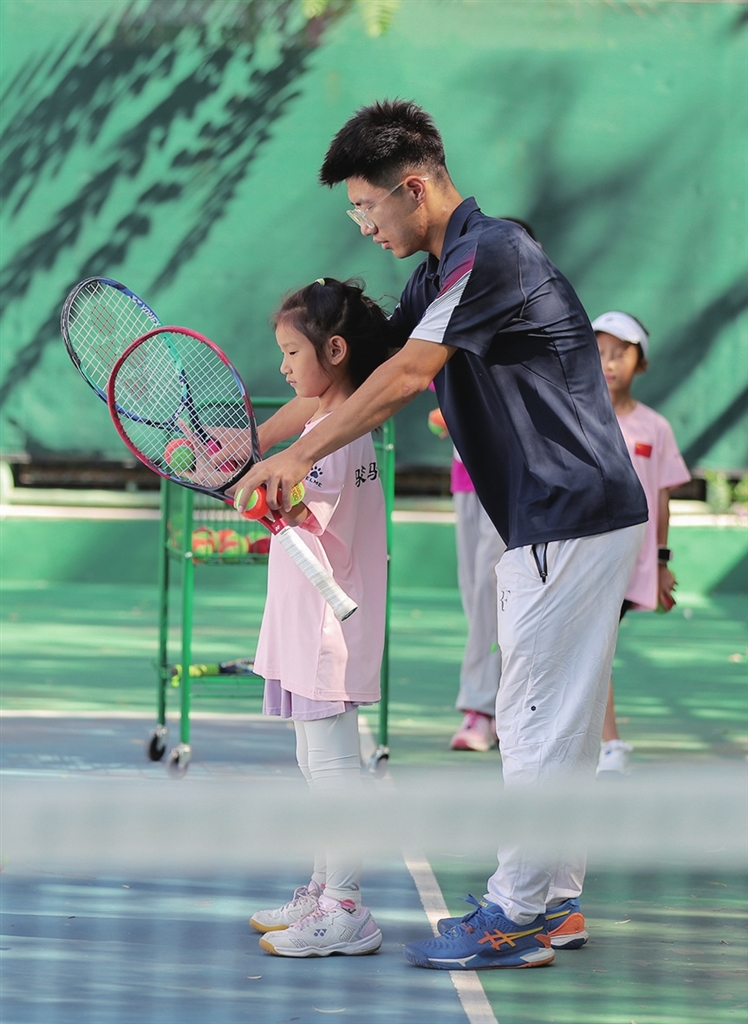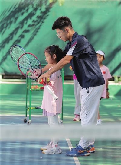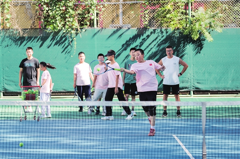 专注地练习网球,不仅能够充分锻炼孩子的体能,也能提升他们的应变能力。“7岁至12岁的青少年学习网球的热情很高,也有年龄低至4岁的小朋友,天天背着小号球拍来学习,感受网球的魅力。”高云华说,学员中,还有不少是成年人。