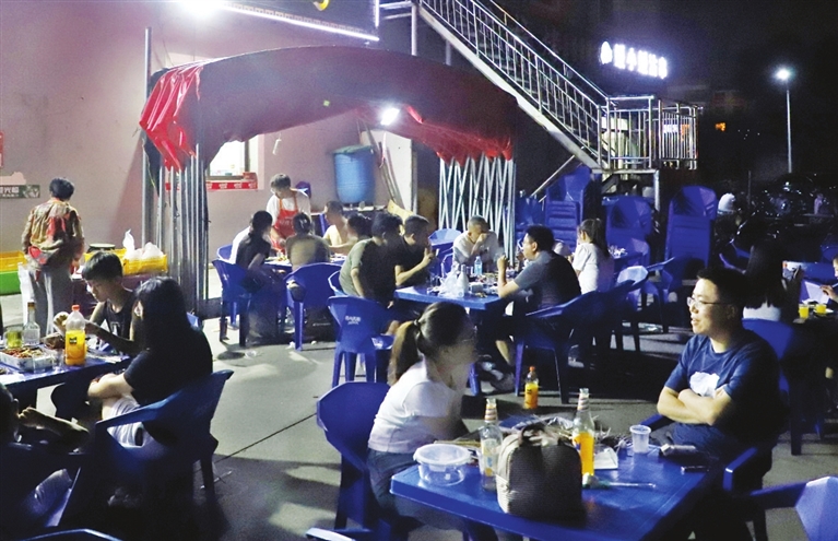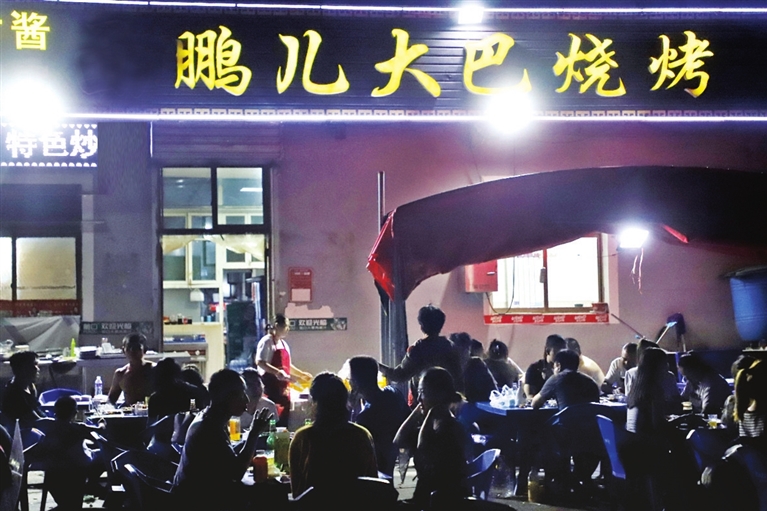 “我和朋友都喜欢来这家店吃烧烤,我们点了羊肉串、牛肉串,还有面包片等。”市民周先生和朋友边喝着啤酒边撸串儿,不时发出开心的笑声。他说烧烤就是夏夜的灵魂。与好友相约,围坐一桌,品尝着美味烧烤,畅谈人生百态,实在是人生一大乐事……烧烤店里人头攒动,辣椒油料的香气弥漫在空气中,肥嫩的羊肉在烟火炙烤下,吱吱作响,店主的吆喝声、食客的交谈声形成独特的烧烤“交响乐”。